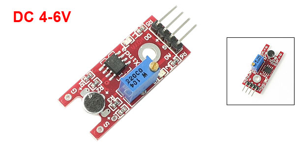 Product Name Voice Sound Sensor Module Fit for for Arduino Working Voltage 4-6V DC Total Size 4 x 1.5 x 1.3cm/1.6" x 0.59"x 0.51"(L*W*H) Materials PCB Net Weight 3g Package Content 1 x Voice Sound Sensor Module