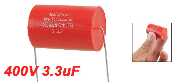 Product Name Tubular Audio Capacitor Type Aluminum Electrolytic Capacitor Capacitance 3.3uF Tolerance ±3% Rated Voltage 400V DC Lead Size 30 x 0.6mm/1.2'' x 0.02''(L*D) Body Size 31 x 21mm/1.2'' x 0.8'' (L*D) Color Red Weight 11g Package Content 1 x Tubular Audio Capacitor - Reviews