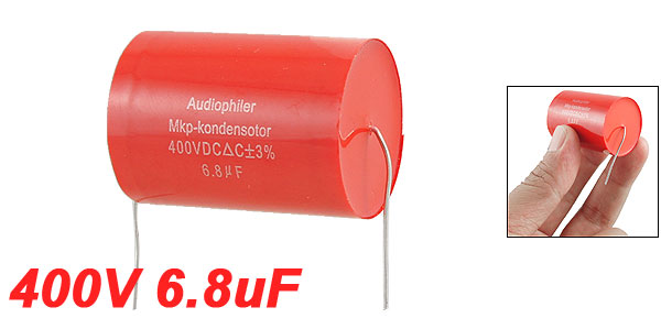 Product Name Tubular Audio Capacitor Type Aluminum Electrolytic Capacitor Capacitance 6.8uF Tolerance ±3% Rated Voltage 400V DC Lead Size 30 x 0.6mm/1.2'' x 0.02''(L*D) Body Size 37 x 26mm/1.5'' x 1'' (L*D) Color Red Weight 22g Package Content 1 x Tubular Audio Capacitor - Reviews