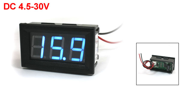 Product Name Digital Voltmeter Module Display 3 Digits Blue LED Voltage Range DC 4.5-30V Total Size 48 x 29 x 22mm/1.9" x 1.1" x 0.87"(L*W*T) Mounting Size 45 x 27mm/1.8" x 1.1"(L*W) Cable Length 14.5cm / 5.7" Material Plastic, PCB, Iron Main Color Black Weight 17g Package Content 1 x Digital Voltmeter Module - Reviews