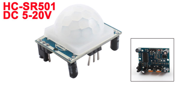 Product Name Infrared Motion Sensor Module Model HC-SR501 Working Voltage DC 5-20V Output Current 65uA(DC3.3V) Sensor Range <7M Sensor Angle <110C Trigger Mode H:Repeated, L:No-repeat Time Range 0.3-18s(Adjustable) Blocking Time 0.2s Working Temperature -15C -70C Total Size 33 x 25 x 25mm/1.3" x 1" x 1"(L*W*H) Sensor Head Diameter 22mm/ 0.87" Screw Hole Dia 2mm Material Plastic, Electronic Part Color Blue, White Net Weight 15g Package 1 x Infrared Motion Sensor Module - Reviews