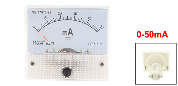 Panel Size 64 x 56mm/2.5" x 2.2"(L*W) Main Color Clear, White Brand DMiotech Net Weight 71g Country of Manufacture CHINA Model 85C1 Package Content 1 x Ammeter Gauge Measuring Range 0-50mA Material Plastic, Metal - Reviews