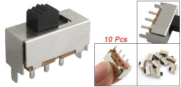 Life Test 10000 cycles/ minute Main Body Size(not include pins & knob) 17 x 7.5 x 7mm/ 0.67" x 0.3" x 0.27" (L*W*H) Overall Size 17 x 7.5 x 16mm/ 0.67" x 0.3" x 0.63" (L*W*H) Material Plastic & Metal Color As picture shown Weight 18g Package 10 x Vertical Slide Switch - Reviews