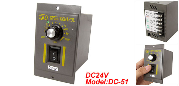 Product Name Motor Speed Controller Model DC-51 Material Plastic, Electrical Material Power Supply AC 220V, 50HZ Output Voltage DC24V Size 8.8 x 6 x 10cm/ 3.5" x 2.4" x 3.9" (L*W*H) Color Gray Weight 154g Package Content 1 x Motor Speed Controller - Reviews