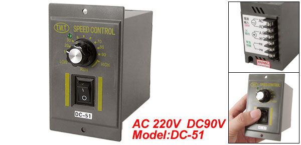 Product Name Motor Speed Controller Model DC-51 Material Plastic, Electrical Material Power Supply AC 220V, 50HZ Output Voltage DC90V Size 8.8 x 6 x 10cm/ 3.5" x 2.4" x 3.9" (L*W*H) Color Gray Weight 154g Package Content 1 x Motor Speed Controller - Reviews