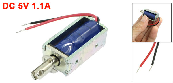 Product Name Open Frame Solenoid Material Metal, Electronic Parts Rated Voltage DC 5V Action Form Pull Type Stroke & Force 5mm, 50gf Current 1.1A Body Size 30 x 15x 10mm / 1.2" x 0.59" x 0.39''(L*W*H) Pluger Diameter 0.4cm / 0.16'' Wire Length 3cm / 1.2'' Net Weight 23g Package Content 1 x Open Frame Solenoid Electromagnet - Reviews