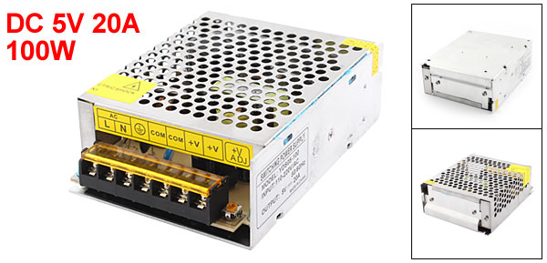 Product Name Switching Power Supply Model No. YDS05-100 Input AC 100-220V 50/60Hz Output DC 5V, 20A Power 100W Terminal Quantity 7 Total Size 13 x 9.8 x 4.3cm / 5.1" x 3.8" x 1.7" (L*W*T) Case Material Metal Main Color Silver Tone Net Weight 378g Package Content 1 x Switching Power Supply - Reviews