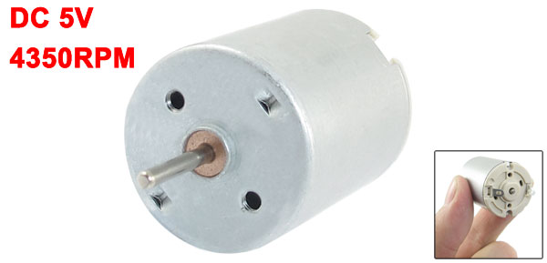 DetailsDC 5V 4350RPM Rotary Speed 2 Pin 2P Terminals Electric Mini Motor  Product Name DC Motor Rated Voltage DC 5V Speed 4350RPM Shaft Diameter 2mm/ 0.078" Shaft Length 12mm/ 0.47" Body Diameter 24mm/ 0.94" Total Length 47mm/ 1.9" Main Color Silver Tone Material Metal Weight 42g Package 1 x DC Motor