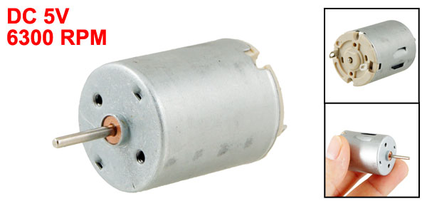 Product Name Motor Rated Voltage DC 5V Rated Speed 6300 RPM Shaft Size 13 x 2mm/ 0.5" x 0.08" (L*D) Motor Body Length 34mm/ 1.3" Motor Body Diameter 24mm/ 0.94" Torque 0.1Kg.cm Total Length(Included Pin) 48mm/ 1.9" Material Metal, Electronic Parts Color Silver Tone Weight 43g Package Content 1 x Gear - Reviews