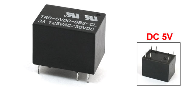 Product Name Power Relay Model TRB-5VDC-SB3-CL Coil Voltage DC 5V Contact Capacity 3A 30VDC/125VAC Contact Type SPDT Terminal Number 6 Pin Main Body Size(Approx.) 15 x 10 x 11mm/ 0.6" x 0.39" x 0.43"(L*W*H) External Material Plastic & Metal Main Color