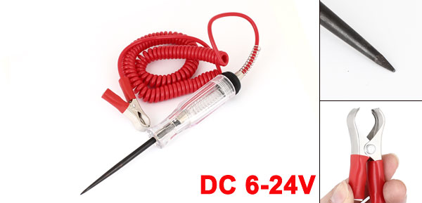 DC 6-24V Circuit Volt Voltage Tester Pen Red Clear for Auto Truck