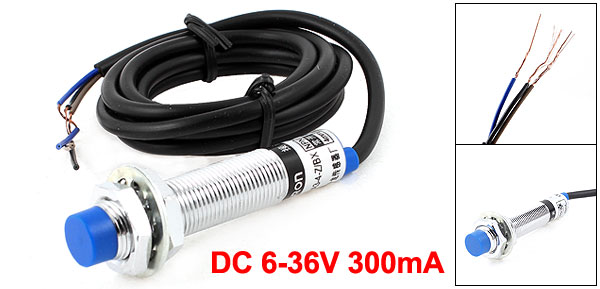 DetailsDC 6-36V 300mA 2mm NO Approach Sensor Inductive Proximity Switch Blue  Product Name Inductive Proximity Switch Model LJ12A3-4-Z/BX Theory Inductive Sensor Wire Type 3 Wire Type (Brown, Blue, Black) Switch Appearance Type Cylinder Type, Metal Shell Output Type NPN NO Detecting Distance 2mm Supply Voltage DC 6-36V Output Current 300 mA Detect Object Iron Column Sensor Diameter 12mm/0.47" Total Size 65 x 20mm/ 2.6" x 0.8" (L*Max.D) Cable Length 1m/39.4" External Material Plastic, Metal Net Weight 24g Color Silver Tone, Blue, Black Package Content 1 x Inductive Proximity Switch