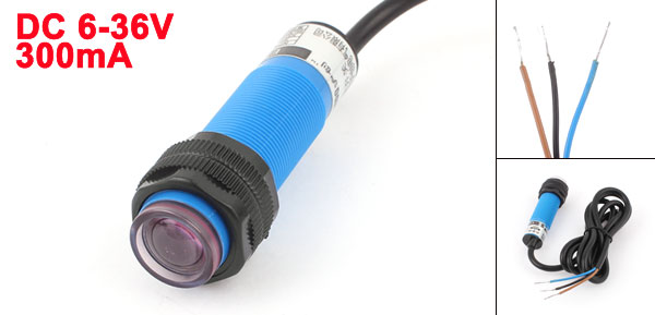 Main Color Black, Blue Brand DMiotech Country of Manufacture CHINA Model E18-5DNA Induction distance 5M Type 3 Wire, NPN, NO Material Plastic Output Current 300mA Wire Length 115cm / 45" Working Voltage DC 6-36V Thread Diameter 18mm / 0.7" Product Name Photoelectric Sensor Switch Net Weight 50g Package Content 1 x Photoelectric Switch Switch Body Size 2.3 x 6.8cm / 0.9" x 2.7" (D*L) - Reviews