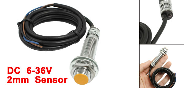 DetailsDC 6-36V 300mA PNP NO 3-wire 2mm Inductive Proximity Sensor Approach Switch  Product Name Inductive Proximity Switch Model LJ12A3-2-Z/BY Wire Type 3 Wire Type (Black, Brown, Blue) Switch Appearance Type Cylinder Type Theory Inductive Sensor Output Type PNP NO(Normal Open) Diameter of Head 12mm Detecting Distance 2mm Supply Voltage DC 6-36V Current Output 300mA Response Frequency 150Hz Detect Object Iron Operating Temperature -25°C to +55°C (Non-freezing Condition) Size 5.7 x 2cm/2.2'' x 0.8'' (L*Max. Dia) Cable Length 110cm/43.3" External Material Plastic, Alloy Net Weight 45g Color Silver Tone, Yellow, Black Package Content 1 x Inductive Proximity Switch