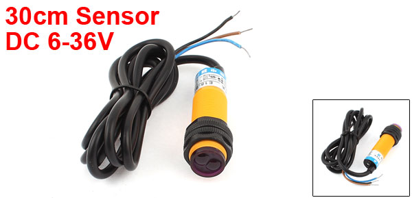 Product Name Photoelectric Switch Sending Light Infrared Rays Output Form PNP NO 3 Wires Voltage DC 6-36V Current 300mA Sensory Distance 30cm Sensor Head Diameter 17mm/0.67" Body Size 23 x 69mm/0.87" x 2.7"(D*L)