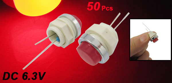 DC 6.3V 2P 10mm Holing Red Flat Head LED Power Indicator Pilot Light 50 Pcs