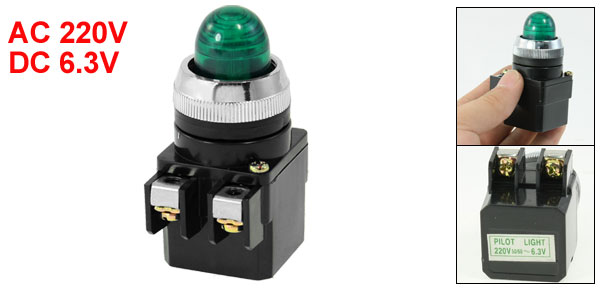 DC 6.3V Green Light Round Head Signal Indicator Pilot Light Lamp AC 220V 50/60Hz