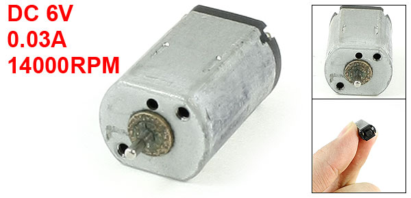 Product Name DC Motor Model NO. K020 Rated Voltage DC 6V Rated Current 0.03A Rated Speed 14000RPM Body Size 10 x 8 x 16mm / 0.4" x 0.3" x 0.6"(L*W*T) Shaft Size 1 x 3mm/ 0.04" x 0.1"(D*L) Main Color Silver Tone Material Metal Net Weight 4g Package 1 x DC Motor - Reviews