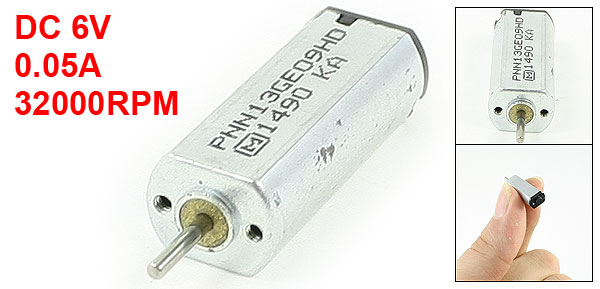 Product Name DC Motor Rated Voltage DC 6V Rated Current 0.05A Rated Speed 32000RPM Body Size 8 x 6 x 21mm / 0.3" x 0.24" x 0.8"(L*W*T) Shaft Size 1 x 5mm/ 0.04" x 0.2"(D*L) Main Color Silver Tone Material Metal Net Weight 4g Package 1 x DC Motor  - Reviews
