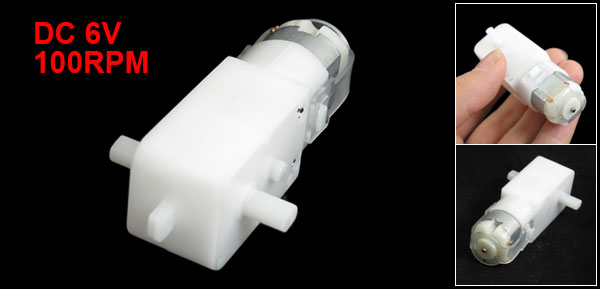 DetailsDC 6V 100RPM Robot Smart Car DIY Single Shaft Gear TT Motor for MCU  Product Name DC Geared Motor Rated Voltage DC 6V Speed 100RPM Shaft Hole Inner Diameter 1.9mm/0.07" Total Size 6.5 x 2.3 x 1.8cm/2.5" x 0.9" x 0.7"(L*W*T) Color White, Silver Tone Net Weight 29g Package Content 1 x DC Geared Motor