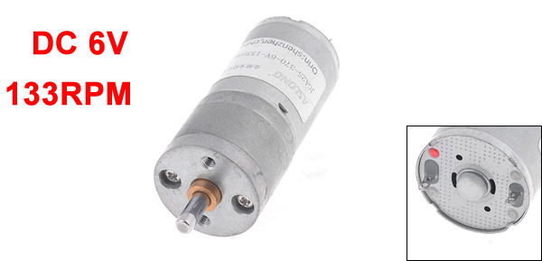 Product Name DC Geared Motor Rated Voltage DC 6V Output Speed 133RPM Mounting Screw Hole Diameter 2.6mm/0.1" Gearbox Size 20 x 20mm/0.8" x 0.8"(D*H) Shaft Size 3 x 10mm/ 0.1" x 0.4"(D*L) Body Lenght 52mm/ 2" Main Color Silver Tone Material Metal Net Weight 92g Package 1 x DC Geared Speed Reduce Motor - Reviews