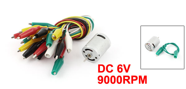DC 6V 2 Terminals Micro Electric Motor 9000RPM w 10 Pieces Alligator Clip Wires