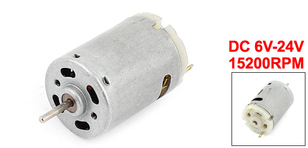 DetailsDC 6V-24V 15200RPM 2.3mm Shaft Micro Motor 385 for DIY Hobby Toys  Main Color Silver Gray Brand DMiotech Net Weight 63g Speed 15200RPM Country of Manufacture CHINA Model 385 Package Content 1 x DC Motor Main Body Size 27 x 38mm / 1" x 1.5" (D*L) Voltage DC 6V-24V Shaft Size 2.3 x 12mm / 0.09" x 0.47" (D*L) Material Metal, Brass