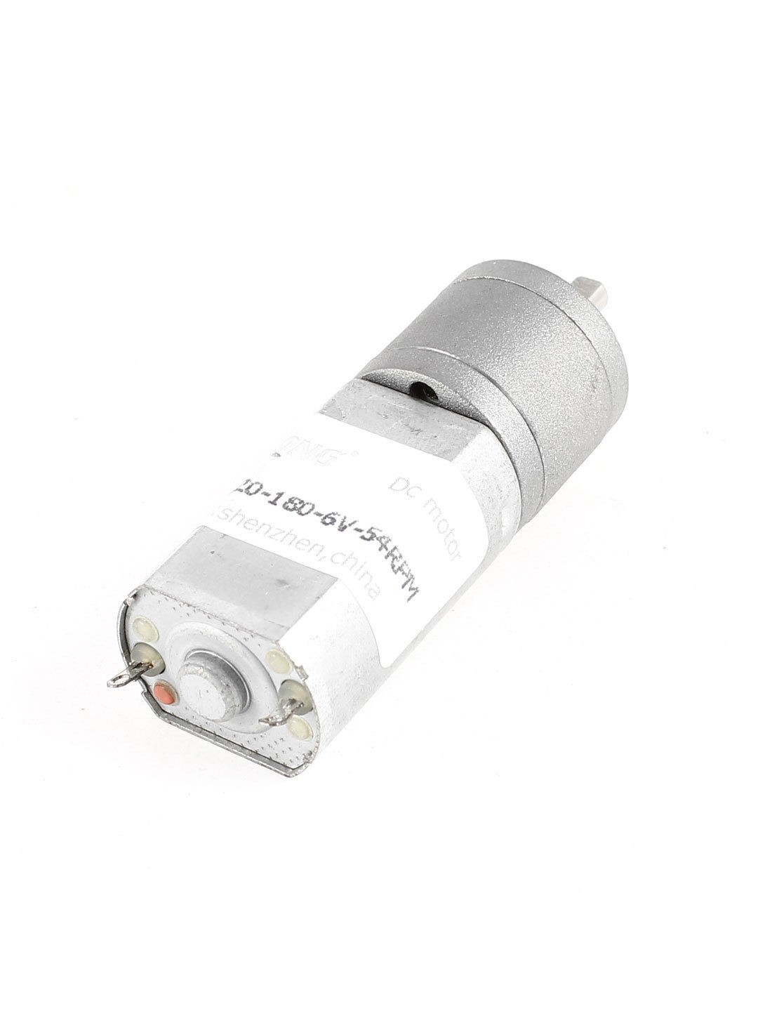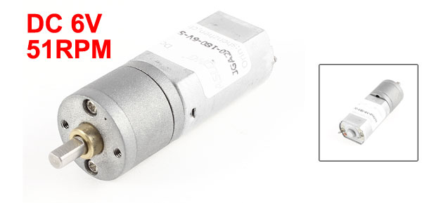 Product Name DC Geared Motor Model JGA20-180 Working Voltage DC 3-9V Rated Voltage DC 6V Output Speed 51RPM No-load Current 80mA Load Current 200mA Rated Torque 3.5Kg.cm Shaft Size 8 x 3.8mm/0.3" x 0.15"(L*D) Motor Size 32 x 20 x 15mm/ 1.25" x 0.79" x 0.59"(L*W*T) Body Length 50mm/ 2" Total Length 65mm/ 2.6" Main Color Silver Tone Material Metal Net Weight 56g Package 1 x DC Geared Speed Reduce Motor - Reviews
