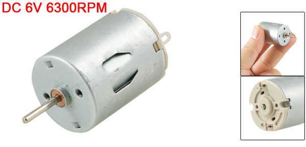 Product Name Motor Rated Voltage DC 6V Rated Speed 6300 RPM Shaft Size 13 x 2mm/ 0.5" x 0.08" (L*D) Motor Body Length 32mm/ 1.26" Motor Body Diameter 24mm/ 0.94" Torque 0.1Kg.cm Total Length(Included Pin) 48mm/ 1.9" Material Metal, Electronic Parts Color Silver Tone Weight 43g Package Content 1 x Motor - Reviews