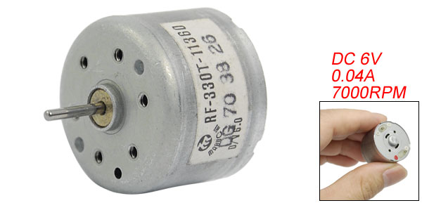 Product Name DC Motor Rated Voltage DC 6V Rated Current 0.04A Speed 7000RPM Shaft Diameter 2.5mm / 0.098" Shaft Length 10mm / 0.393" Body Diameter 24mm / 0.944" Total Length 30mm / 1.181" Main Color Silver Tone Material Metal Weight 30g Package 1 x DC Motor - Reviews