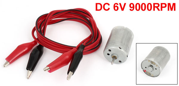 DC 6V 9000RPM 2 Terminal Type 370 High Torque Mini Motor w Alligator Clip Cable
