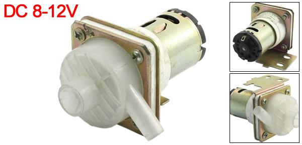 Product Name Micro Pump Motor Rated Voltage DC 8-12V Water Outlet Direction Right Pin Quantity 2 Pin Total Length 7.5cm /3" Motor Size 2.8 x 2.7mm / 1.1" x 1.1" (L*D) Pump Head Size 4.2 x 3.6 x 3cm/1.7" x 1.4" x 1.2"(L*W*T) Water Outlet Diameter 8.2mm / 0.32" Main Color Gold Tone, White, Black Material Metal, Plastic Net Weight 105g Package 1 x Micro Pump Motor - Reviews