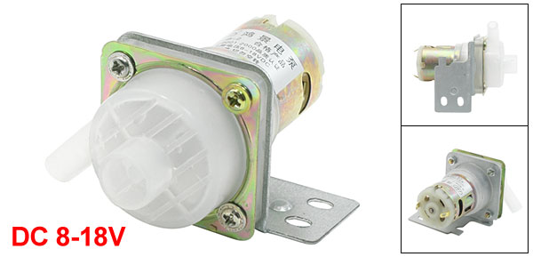 Product Name Micro Pump Motor Model DB-2 Rated Voltage DC 8-18V Water Outlet Direction Right Total Length 8mm /3.15" Motor Size 27 x 40mm / 1" x 1.6" (D*L) Pump Head Size 5 x 3.5 x 2.5cm/2" x 1.4" x 1"(L*W*T) Water Outlet Diameter 6mm / 0.24" Main Color Silver Tone, White Material Metal, Plastic Net Weight 106g Package 1 x Micro Pump Motor - Reviews
