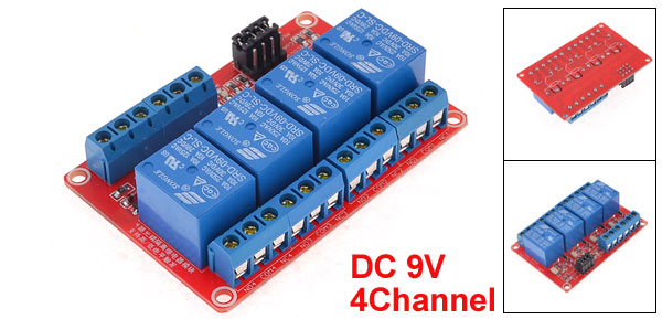 Product Name Optocoupler Driver Relay Module Relay Type SRD-09VDC-SL-C Coil Voltage DC 9V Pole Number 4 Channel Load 10A, AC 250V/125V, DC 30V/28V Overall Size 7.3 x 5 x 1.8cm/2.9" x 2" x 0.7"(L*W*H) Materials Metal, Plastic, Electric Parts Main Color Red, Blue Weight 66g Package Content 1 x Optocoupler Driver Relay Module - Reviews