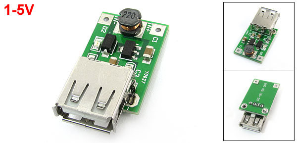 Product Name Step Up Boost Module Model DC-DC Input 1-5V Output Voltage 5V Output Current 300mA Total Size 33 x 18 x 10mm/ 1.3" x 0.7" x 0.4"(L*W*T) Material Plastic, Iron Color Green, Silver Tone Weight 5g Package 1 x Step Up Boost Module - Reviews