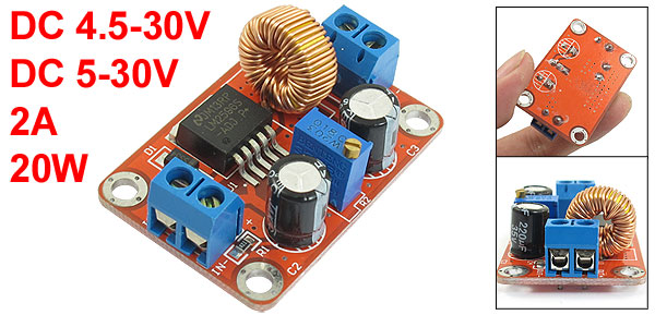 Product Name Step-down Module Model 0006 Input Voltage DC 4.5-30V Output Voltage DC 5-30V Output Rated Current 2A Power 20W PCB Board Size 44 x 30 x 12mm/ 1.73" x 1.2" x 0.47" (L*W*H) Mounting Hole Dia 3.5mm/ 0.14" Net Weight 25g Package Content 1 x Step-down Module - Reviews