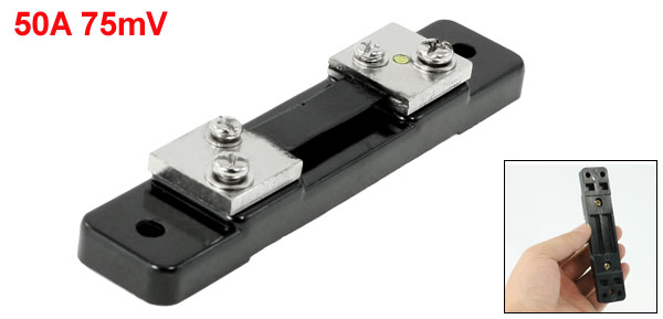 Product Name DC Shunt Material Metal, Plastic Color Black, Silver Tone Current 50A Voltage Drop 75mV Total Size 12 x 2.5 x 1.5cm / 4.7" x 0.98" x 0.6"(L*W*H) Mounted Hole Diameter 6mm/0.24" Mounted Hole Center Distance 102mm/4" Net Weight 71g Package Content 1 x DC Shunt Resistor - Reviews