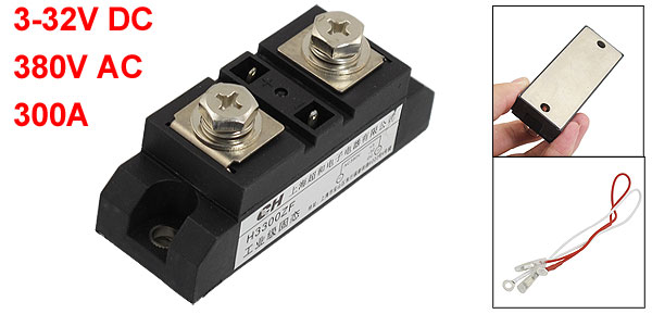 Product Name Solid State Relay Model No. H3300ZF Control Method DC to AC Current 300A Input Voltage 3-32V DC Output Voltage 380V AC Mount Hole Diameter 6.5mm/ 0.26" Mount Hole Distance 80mm/ 3.15"(Center to Center) Relay Size (Approx.) 9.4 x 3.4 x 4.1cm/ 3.7" x 1.3" x 1.6" (L*W*H ) Wire Length 25cm/ 9.8" Material Metal, Plastic Main Color Black Weight 220g Package Content 1 x Solid State Relay
