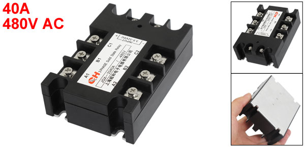 Product Name 3 Phase Solid State Relay Model No. JGX-3340A Control Method DC to AC Input Current 9-30mA Input Voltage 3.5-32VDC Output Current 40A Output Voltage 480VAC Mount Hole Size 7 x 5mm/ 0.28"x 0.2"(L*W) Total Size (Approx.) 10.4 x 7.3 x 3.2cm / 4" x 2.9" x 1.3" (L*W*H ) Material Metal, Plastic Color Black, Silver Tone Weight 310g Package Content 1 x 3 Phase Solid State Relay - Reviews