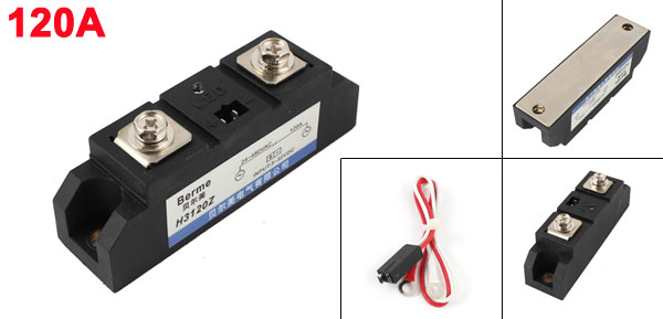 Product Name Solid State Relay Model No. H3120Z Control Method AC to DC Current 120A Input Voltage 3-32V DC Output Voltage 24-480VAC Relay Size (Approx.) 9.3 x 2.5 x 3cm / 3.7" x 0.98" x 1.2" (L*W*H ) Wire Length 23.5cm / 9.3" Material Metal, Plastic Main Color Black Weight 151g Package Content 1 x Solid State Relay
