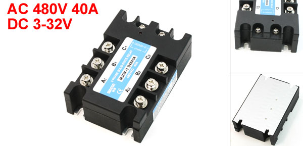 Product Name 3 Phase Solid State Relay Model No. MJGX-3 D4840A Control Method DC to AC Input Voltage 3-32V DC Output Current 40A Output Voltage 480V AC Total Size (Approx.) 10.3 x 7.3 x 3cm / 4" x 2.9" x 1.2" (L*W*H ) Material Metal, Plastic Color Black, Silver Tone Weight 344g Package Content 1 x 3 Phase Solid State Relay - Reviews