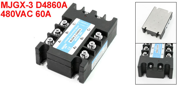Product Name Three Phase Solid State Relay Model No. MJGX-3 D4860A Control Method DC to AC Input Voltage 3-32V DC Output Current 60A Output Voltage 480V AC Total Size (Approx.) 10.3 x 7.3 x 3cm / 4" x 2.9" x 1.2" (L*W*H ) Material Metal, Plastic Color Black, Silver Tone Weight 344g Package Content 1 x Three Solid State Relay - Reviews