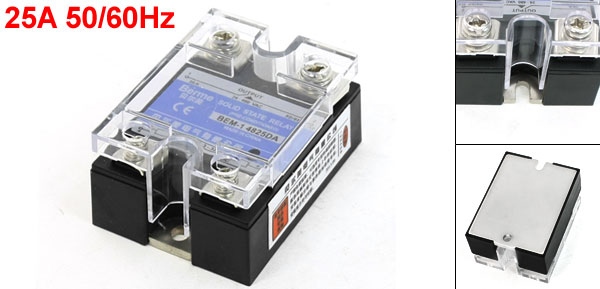 Product Name Solid State Relay Model No. BEM-14825DA Current & Frequency 25A, 50/60Hz Output Voltage 24-480VAC Control Voltage 3-32VDC Mounting Hole Diameter 4.5mm / 0.18" Total Size (Approx.) 58 x 45 x 32mm / 2.3" x 1.8" x 1.26" (L*W*T) Material Metal, Plastic, Electronic Parts Net Weight 116g Package Content 1 x Solid State Relay - Reviews