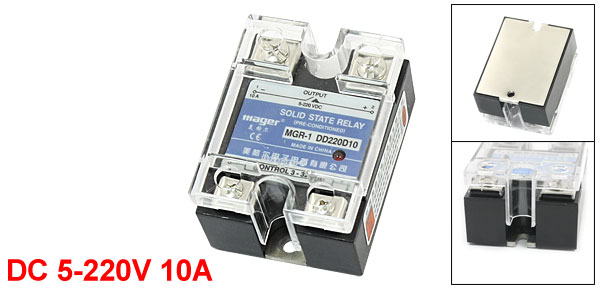 Product Name Solid State Relay Control DC 3-32V Output DC 5-220V 10A 50/60Hz Screw Terminal 4 Phase 1 Fixing Hole Dia 4.5mm/0.14" Fixing Center Distance 50mm/2" Size (Approx.) 59 x 45 x 32mm/ 2.4" x 1.9" x 1.3"(L*W*T)