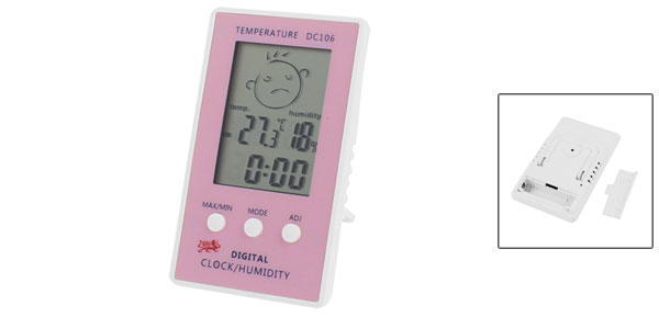 Product Name Digital Thermometer w Hygrometer Model DC106 Power By 1 x 1.5V AAA Battery( not included here) Usage Indoor Temperature Range Indoor: -10°C-+50°C(+14°F-+122°F) Humidity Range Indoor: 20%~99%RH Size 98 x 58 x 14mm/ 3.9" x 2.3" x 0.55"(L*W*H) Material Plastic Main Color White, Pink Weight 69g Package include 1 x Digital Thermometer w Hygrometer - Reviews