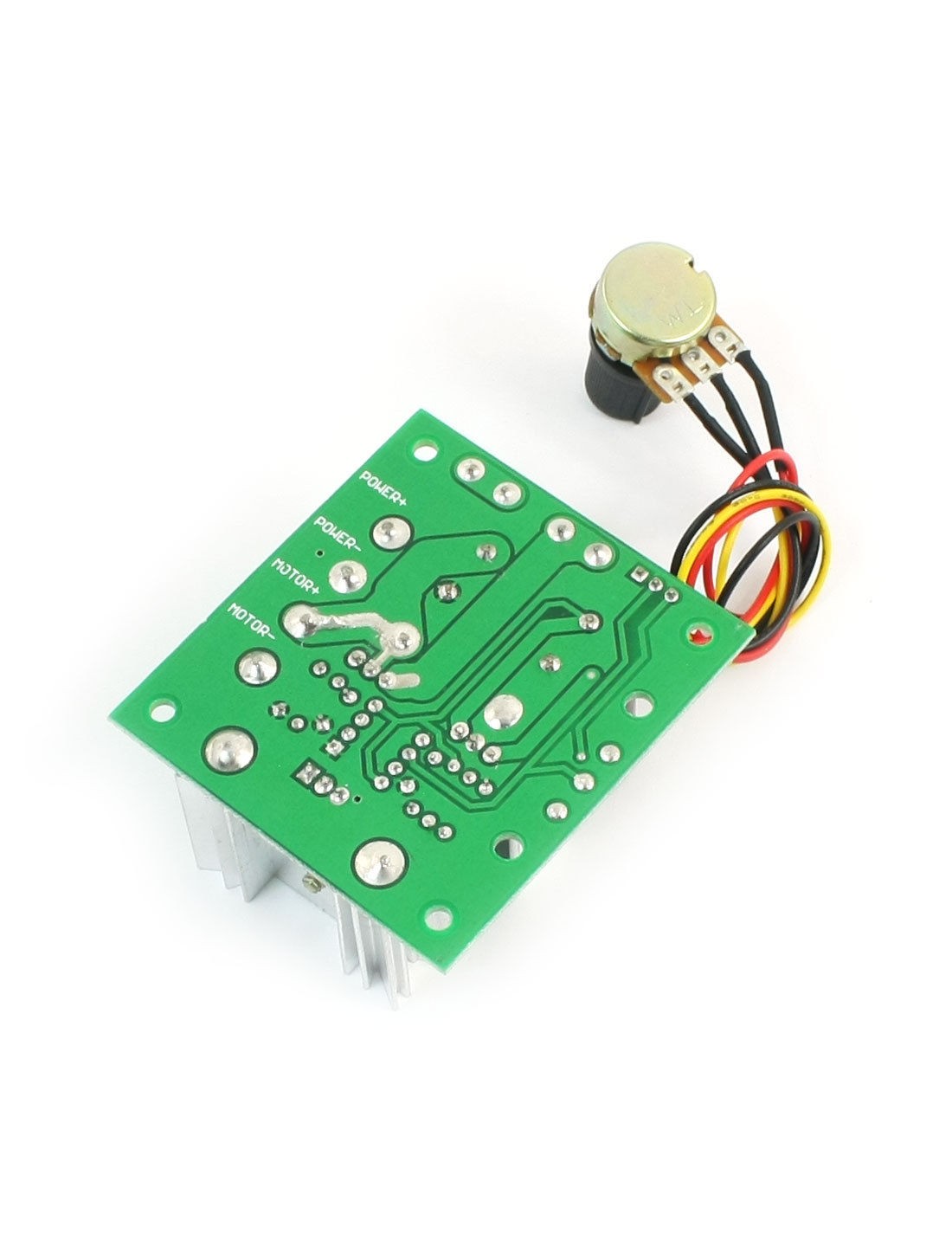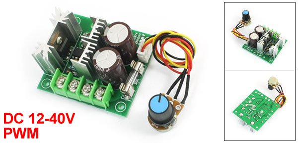 DetailsDC12-40V Potentiometer Adjustable PWM Motor Driver Speed Controller Module  Product Name Motor Driver Speed Controller Input Voltage DC 12-40V Control Power 400W Modulation Type PWM Control By B10K Potentiometer Body Size 60 x 55 x 28mm/2.4" x 2.2" x 1.1"(L*W*H) Fixing Hole Dia 3mm/0.12"(L*W) Fixing Hole Center Distance 50 x 45mm/2" x 1.7"(L*W) Wire Length 21cm/8.3" Material Metal, Aluminum, PCB Main Color Black, Silver Tone, Green Wieght 74g Package Content 1 x Motor Driver Speed Controller