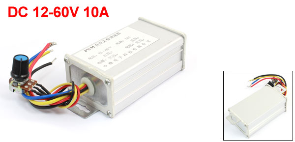 Product Name PWM DC Motor Stepless Speed Controller Input Voltage DC 12-60V Rated Current 10A Body Size 90 x 50 x 35mm/ 3.5" x 2" x 1.4" (L*W*H) Mounting Hole Size 16 x 6mm/ 0.63" x 0.24"(L*W) Material Aluminum Alloy, Electronic Parts Cable Length 13cm/5.1" Main Color Silver Tone Wieght 142g Package Content 1 x PWM DC Motor Stepless Speed Controller - Reviews