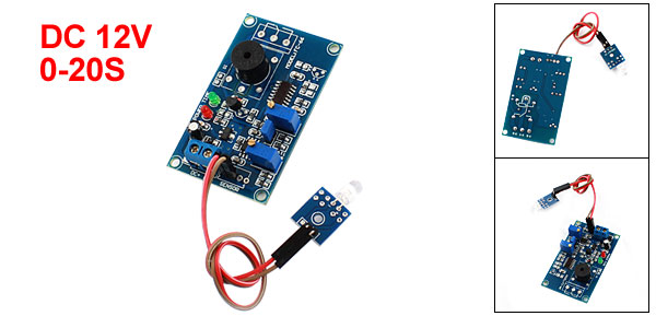 Product Name Delay Alarm Module Working Voltage DC 12V Delay Time 0-20S(0-200S) Fixing Hole Dia 3mm/0.12" Fixing Hole Center Distance 58 x 33mm/2.3" x 1.3"(L*W) Wire Length 20cm/8" Total Size 6.4 x 3.9 x 1.2cm/2.5" x 1.6" x 0.47"(L*W*H) Materials PCB Main Color Green Net Weight 18g Package Content 1 x Delay Alarm Module