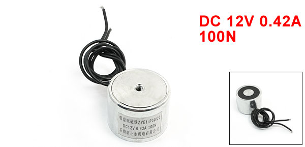 Product Name Sucking Disc Solenoid Electromagnet Model ZYE1-P30/22 Type Sucked Type Material Metal, Electronic Parts Rated Voltage & Current DC 12V, 0.42A Attraction 100N Overall Size 30 x 22mm / 1.2" x 0.87"(Dia.*T)