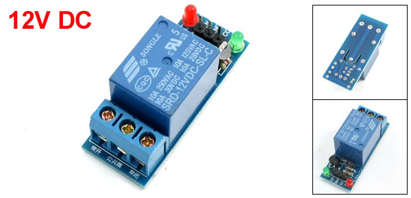 Product Name Relay Module Model SRD-12VDC-SL-C Material Electronic Parts Number of Channels 1 Voltage 12V DC Load 10A, AC 250V/125V, DC 30V/28V Size 43 x 17 x 18mm/ 1.7" x 0.67" x 0.7" (L*W*H) Color Blue Weight 21g Package 1 x Relay Module - Reviews